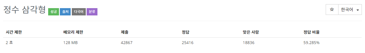 삼각형의 크기는 1 이상 500 이하이다. 삼각형을 이루고 있는 각 수는 모두 정수이며, 범위는 0 이상 9999 이하이다.