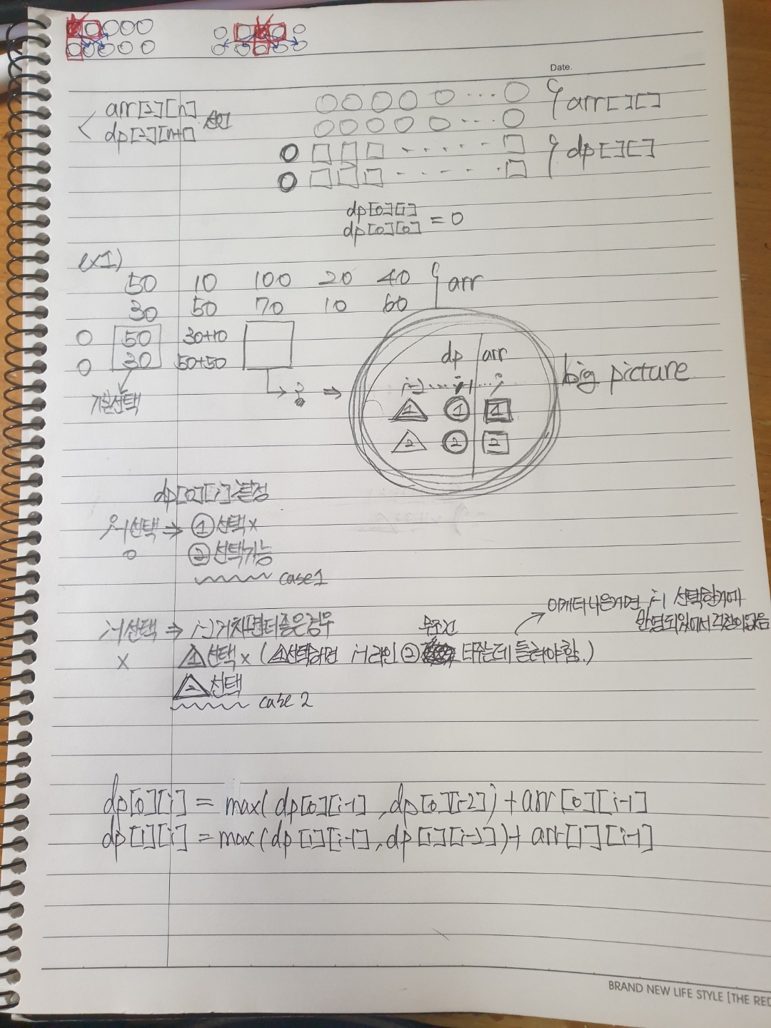 문제를 풀고 노트에 문제를 풀때 사고를 정리한 노트이다.