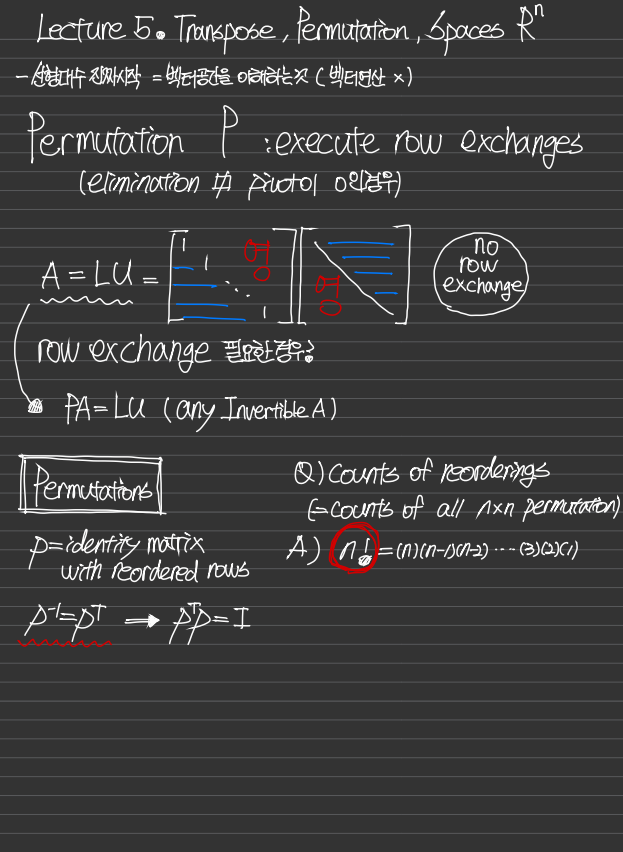 행을 바꾸는 경우는 A=LU분해를 할때, 행을 바꿔야 Pivot을 찾을 수 있는 경우였다.