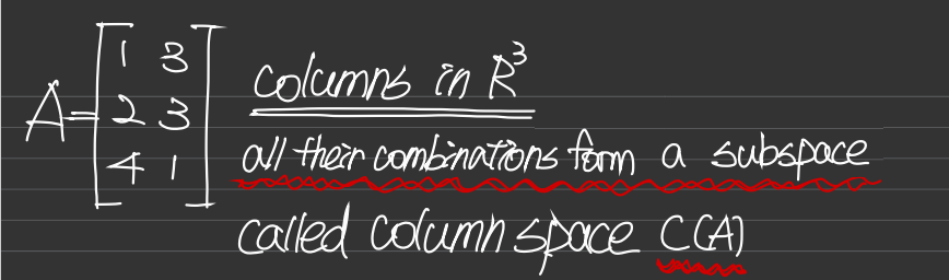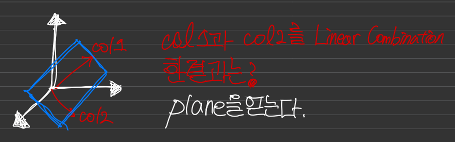 3차원 공간안에서 독립한 두 column들을 선형결합하면 평면이 만들어지는데 이 평면은 R^3의 부분공간이다.