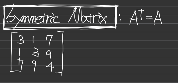 대칭행렬(Symmetric Matrix)는 대각선을 기준으로 대칭인 행렬을 말한다.