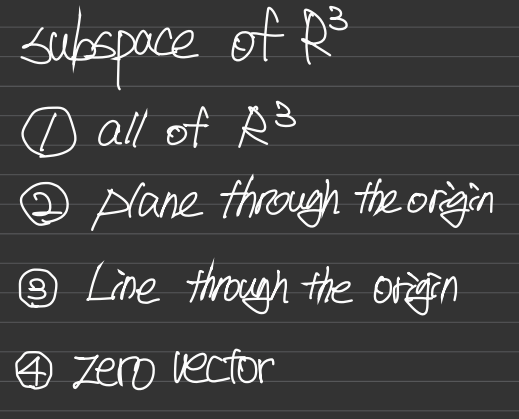 3차원 공간일 떄는 직선뿐만아니라 3차원 공간 안에 평면도 부분공간이다.