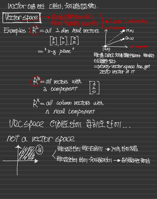 선형대수를 제대로 시작하는 부분은 벡터공간을 이해하는 것 부터라고 하신다.