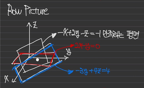 세 평면이 모두 만나는 점이 해이다(특수한 경우 점이 아닐 수 있음)