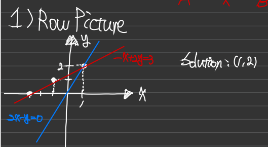 Row 1,2는 각각 [2 -1], [-1 2]인데 두 직선의 각 x, y계수를 나타냄